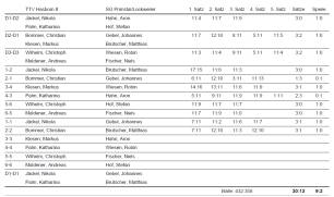 In den Einzeln spielte dann Nikola insbesondere im Spitzenspiel gegen Gebel sehr stark (3:1) und hatte auch gegen Brutscher (3:0) wenig Probleme. Die weiteren Punkte für uns erzielten dann noch Christian (3:1 – Brutscher), Markus (3:1 – Wiesen), Christoph (3:0 – Hof) und Andi (3:0 – Fischer).