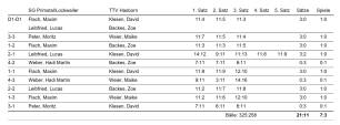 Beim 3:7 konnten dabei alle jeweils einen Punkt beisteuern. Erwähnenswert sind dabei vor allem der erste Saisonsieg für Maike und dass David gegen die gegnerische Nr. 2 Lucas Leibfried unglücklich in 5 knappen und hart umkämpften Sätzen unterlegen war.