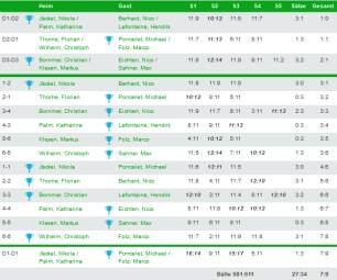 Dabei ging es in den Anfangsdoppeln mit 2 Siegen von Nikola Jäckel/Katharina Palm und Christian Bommer/Markus Klesen ganz gut los.