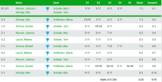 Die erwartet deutliche Niederlage musste unsere U13 in der Aufstellung Daniel Schnur, Joshua Klesen, Nils Nicolay und Milena Lauck trotz guter Gegenwehr hinnehmen. Dabei war Daniel in seinem letzten Einzel ganz knapp am Ehrenpunkt dran und musste sich leider in der Verlängerung des Entscheidungssatzes mit 14:16 geschlagen geben.