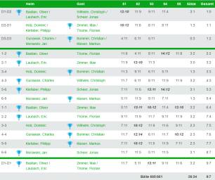 Die Punkte für uns erzielten die Doppel Max/Florian und Christian/Markus und in den Einzeln Christoph (1), Christian (2) und Markus (2).