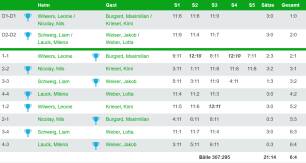 In der Aufstellung David Klesen, Julien Thome, Max Schummer und Meo Bonny konnte lediglich David ein Einzel gewinnen, die restlichen Punkte resultierten aus dem Fehlen des 3. Limbacher Spielers.