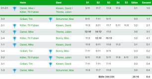 Bei der 2:8 Niederlage in Saarbrücken in der Aufstellung Daniel Schnur, Nils Nicolay, Milena Lauck und Liam Schweig konnte erneut Daniel seine gute Form unter Beweis stellen und so die beiden Zähler für unsere Mannschaft erzielen.