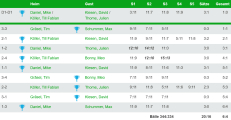 Bei der unglücklichen 3:7 Heimniederlage der U15 gegen Merchweiler-Hüttigweiler wäre durchaus mehr drin gewesen. Insgesamt 3 knappe 5-Satz-Niederlagen verhinderten ein besseres Ergebnis. In der Besetzung Leonie Wilwers, Emma Baab und Bastian Rackow konnten Leonie (2) und Bastian in den Einzeln für uns punkten.