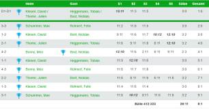 Im vorgezogenen Spiel gegen den TTC Limbach konnte unsere U19 in der Besetzung David Klesen, Julien Thome, Max Schummer und Meo Bonny dank einer deutlichen Leistungssteigerung aller Spieler zum Hinspiel einen deutlichen 9:1 Erfolg feiern. Die Punkte für uns erzielten dabei das Doppel David/Julien und in den Einzeln David (3), Julien (2), Max (2) und Meo (1).