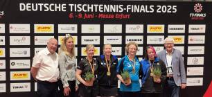 Bei den Deutschen Meisterschaften am Pfingstwochenende in Erfurt gewann Nikola Jäckel vom TTV Hasborn ihre Deutsche Meistertitel 13, 14 und 15. In der Altersklasse AK45 verteidigte Nikola hierbei zum 4. Mal nach 2022, 2023 und 2024 ihren Titel im Damen Einzel.