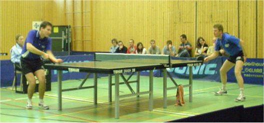 Das Endspiel war dann an Spannung kaum mehr zu überbieten. Kirsten Falk ging gegen Nikola Neu zunächst mit 2:0 Sätzen in Führung. Neu wurde jedoch immer stärker und erkämpfte sich nach vielen tollen Ballwechseln noch mit 3:2 den Sieg. Christian Schleppi zeigte auch gegen Oliver Keiling eindrucksvoll warum er in der Oberliga mit der unglaublichen Bilanz von 30:0 Einzel- und 15:0 Doppelsiegen noch ungeschlagen ist. Immer wieder konnte er mit seinem extrem harten Vorhandtopspin punkten. Doch Oliver Keiling zeigte ebenso, dass er im saarländischen Herrentischtennis derzeit eine Ausnahmestellung hat. Mit einer überragenden Leistung konnte sich der ehemalige Deutsche Jugendnationalspieler den 3:1 Sieg über Schleppi erspielen. Im Mixed spielten Nikola Neu/Christian Schleppi sehr stark auf. Bei einer 10:7 Führung im Entscheidungssatz hatten beide sogar drei Matchbälle und somit die Möglichkeit den Titel unter Dach und Fach zu bringen. Doch Falk/Keiling konnten sich in klasse Manier noch einmal heran kämpfen und schafften in der Verlängerung des Entscheidungssatzes mit 12:10 den Sieg. Somit heißen die Sieger des 4. Hasborner Mixedturniers 2005 KIRSTEN FALK und OLIVER KEILING.